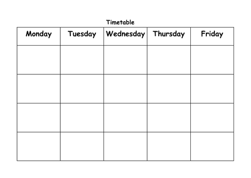 Since most schools remain closed on remaining two days The days of a week are depicted at the top and the time periods in the left most column leaving blank boxes against each period row wise. Weekly timetable Timetable for the week commencing…………… You can add details of your regular timetable and then photocopy this page to help you produce a plan for the week ahead. Are you tired of using your phone as your only **This is part of the Neon Chevron Classroom Theme** Use these with the Neon Chevron Calendar Blank!